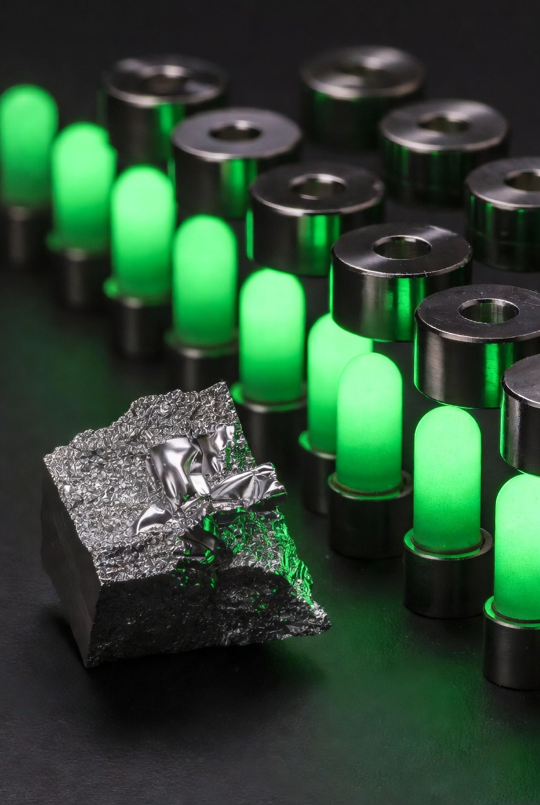 Hidden in the periodic table's depths lies terbium, a soft, silvery-gray rare earth element (chemical symbol: Tb), twice as abundant as silver yet extraordinarily scarce in practice.  When energized, its ions blaze with a vivid, jewel-like green glow that powers the emerald brilliance of LED screens, fluorescent lamps and smartphone displays.  Simultaneously, terbium supercharges permanent magnets, delivering relentless torque to electric vehicle motors in blistering heat and keeping giant wind turbines spinning smoothly through fierce storms.