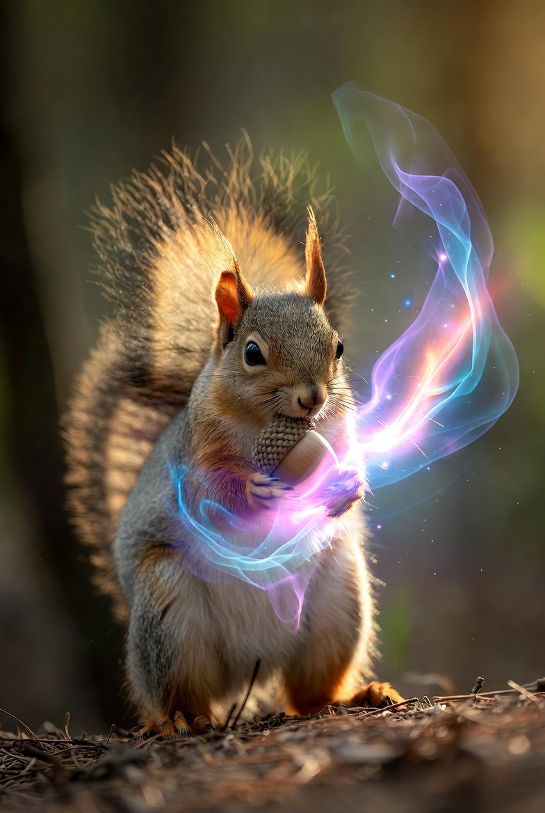 In the heart of the Whisperwood, where the trees kissed the sky and the streams danced with laughter, there lived a clever young squirrel named Scruples. One day, while rummaging through the ruins of a forgotten campsite, he stumbled upon an ancient spell inscribed on a weathered stone. The words promised the power to conjure endless acorns—a bottomless bounty to fill his hallowed home.